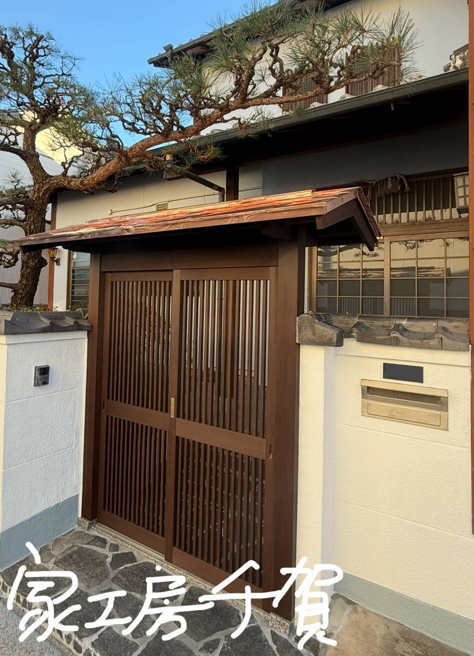 施工事例 しっかりと按配よく、損害保険事故復旧工事 数寄屋門