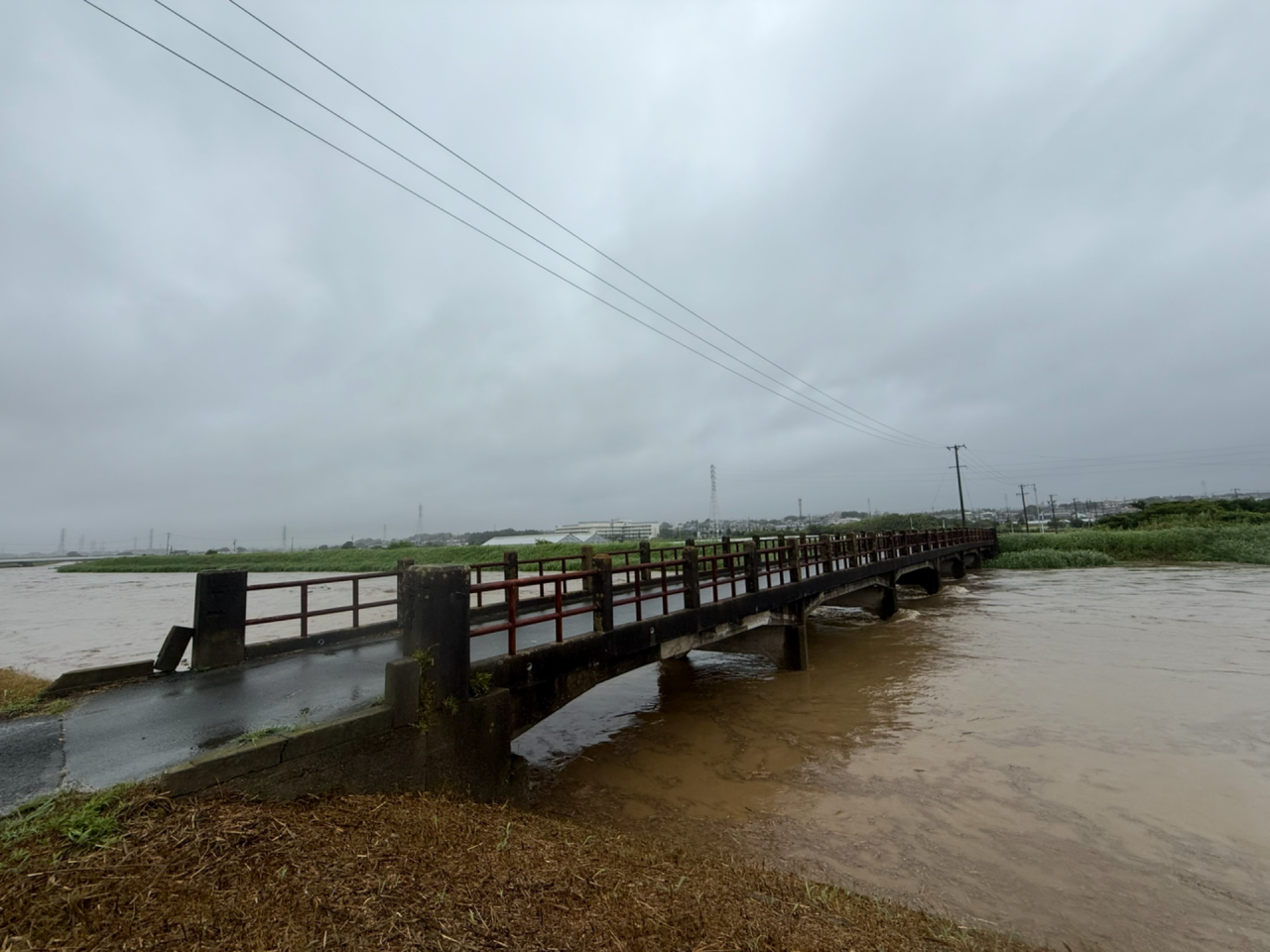 国1の走行車線側には、大規模な水溜り。交差する車。溜まった大きな池みたいな水溜りから進行してくる車の圧で、津波の様に押し寄せる。あの深さの中、あまり減速せず、躊躇せず、勢いよく突っ込む方も、中々のツワモノだ。そして、今度は、今にも溢れそうな川。濁流を渡る橋も怖かった。