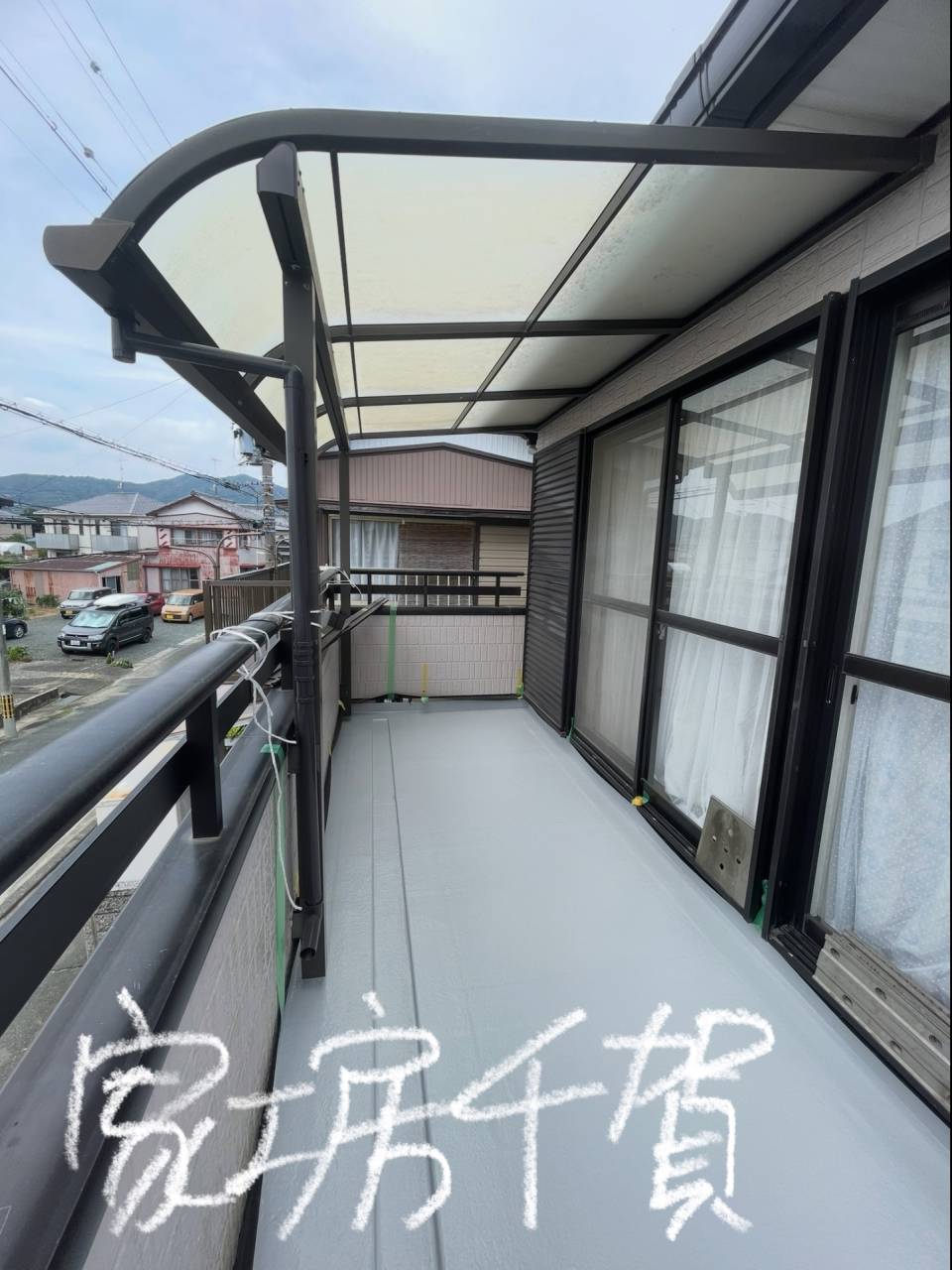 ベランダ防水の老朽化に伴う漏水調査をさせて頂きました。既設の仕上げ材を剥がし、ベランダ床の素地確認、その後、老朽化した床をサンディング研磨し、FRP防水の施工。