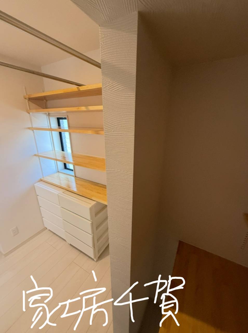 施工事例 棚板。パインフリー板の煌き、テカリ具合に拘る。