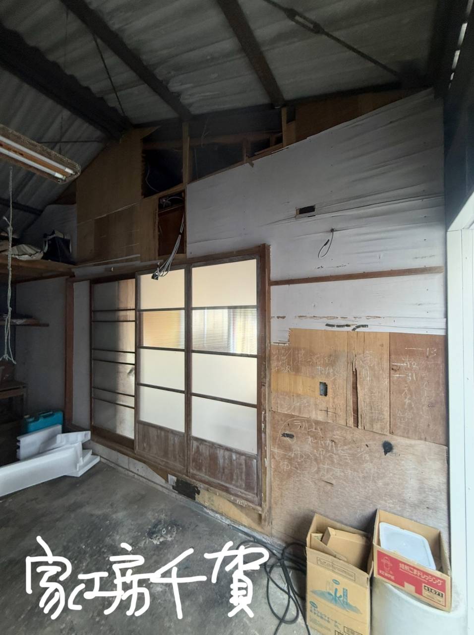 傷んだ壁面と入口をガルバリウム鋼板の角八と、アルミのスクリーンパーテーションにて、張替、取替させて頂きました。