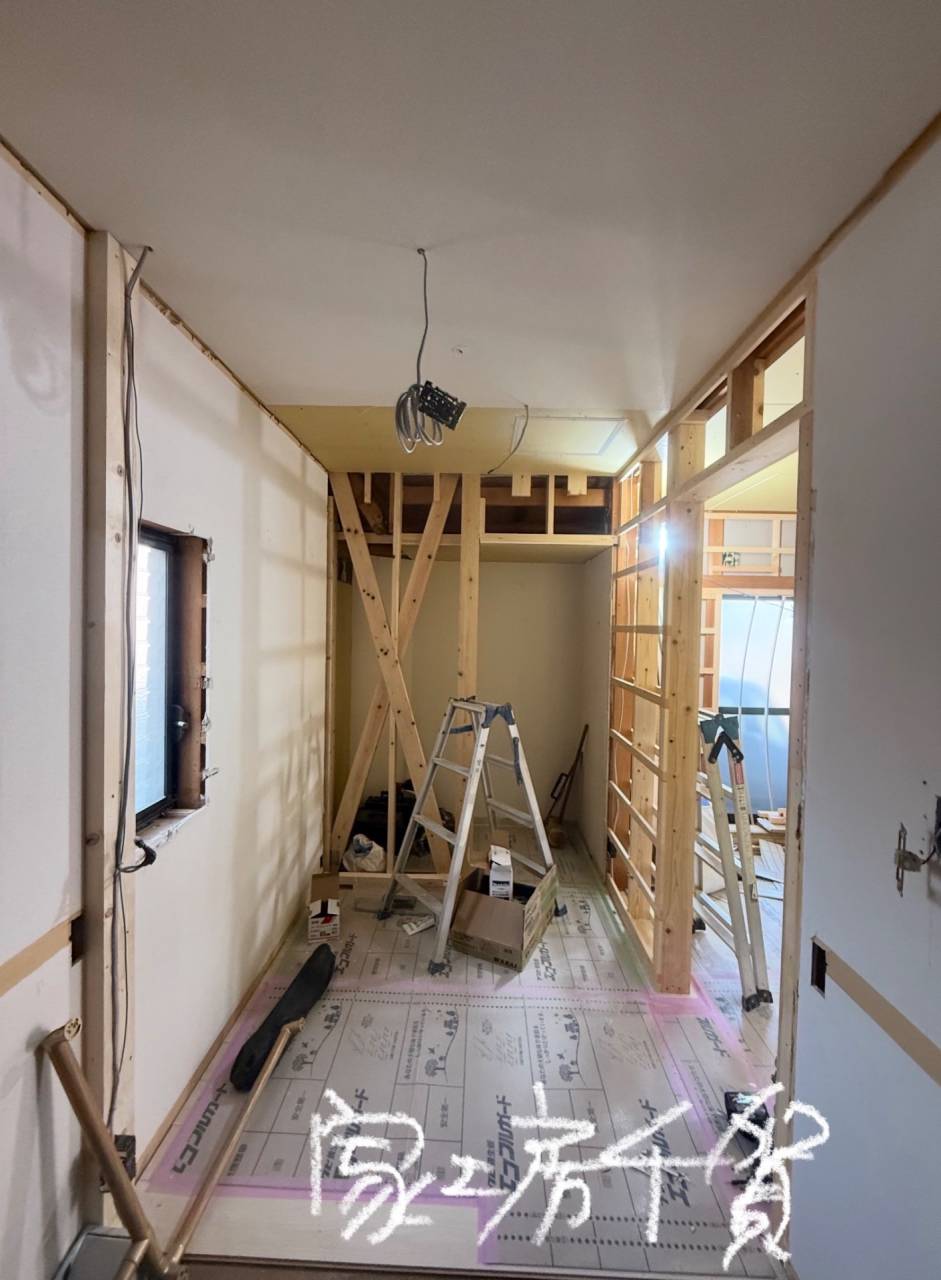 施工風景 和室〜洋間へ、筋交新設補強 改装リノベーション