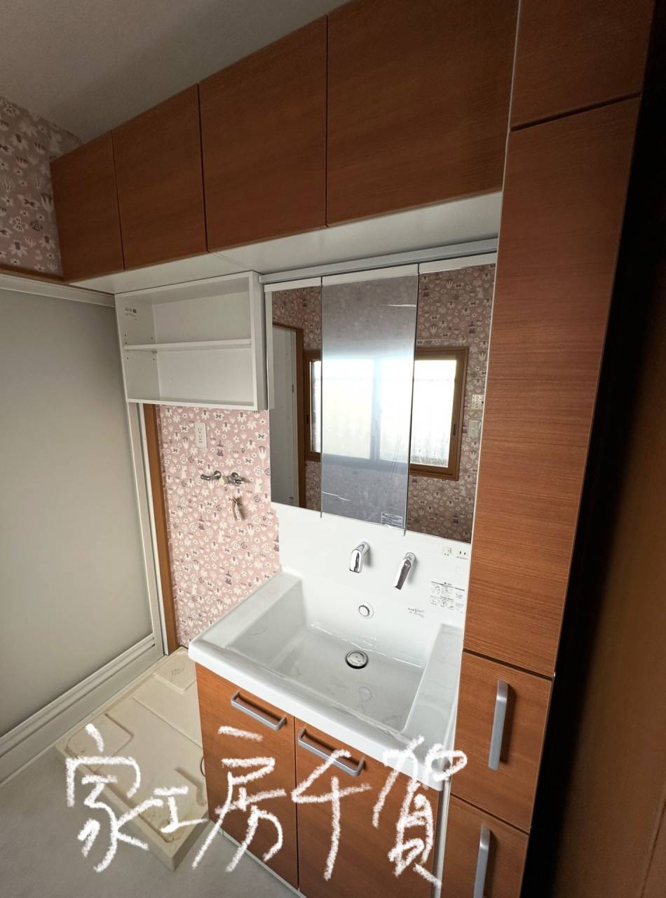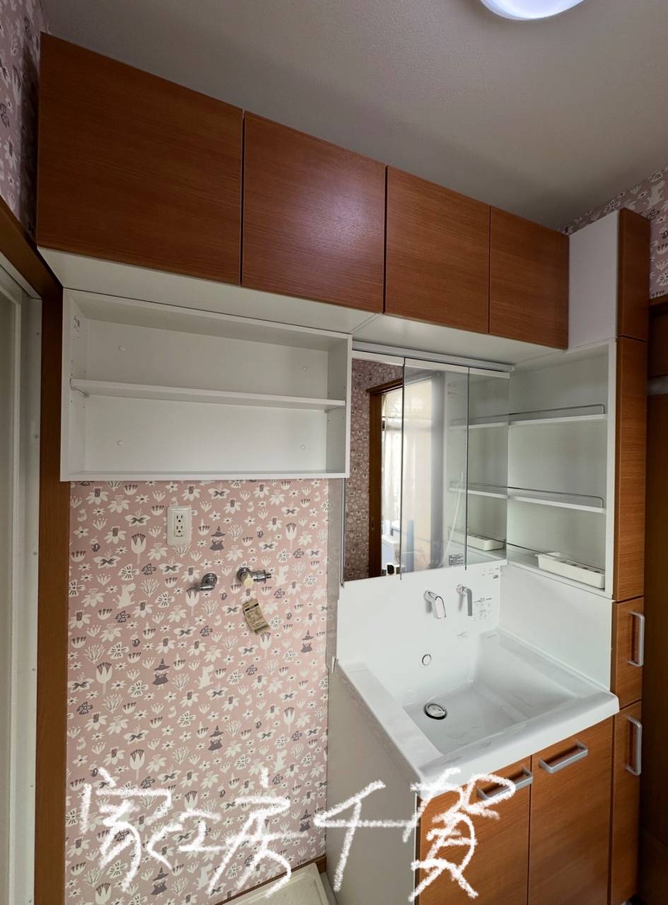 たくさん仕舞える様に、収納量を増やした洗面化粧台に取替。